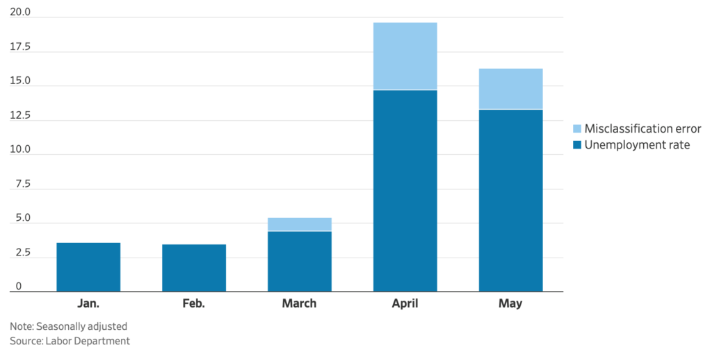 June 10, 2020 – The most recent report on US labor market conditions by the Bureau of Labor Statistics (BLS), released on June 5 and reporting on employment and unemployment in May 2020, has provoked a torrent of commentary on the accuracy of the survey data. In this particular case, the problem resides in the correct categorization of individuals who were “furloughed” or otherwise separated from their jobs for a (perceived) temporary period of time while the economy was shut down due to the coronavirus pandemic. The BLS has been aware since March that many individuals who should be correctly counted as unemployed were self-reporting themselves as “employed but absent”. Correcting for this error would have put the May unemployment rate at 16.3% instead of the reported 13.3% and the April unemployment rate at 19.7% instead of 14.7%.