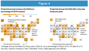 Constraining the move into the next expansion will be several unresolved problems: 1) state and local government budget cuts necessitated by the costs of fighting the pandemic, 2) global trade tensions, especially with China and 3) the sharp increase in the US budget deficit and US national debt. See Figure 4