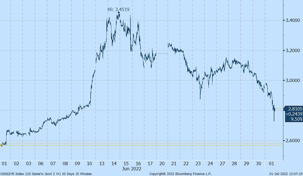 How far and how fast the Fed will have to raise rates is the question of the hour, though of course, even the Fed doesn’t know the answers to these questions. Market sentiments over the Fed’s next moves varied widely throughout the month of June, as can been seen in the two-year treasury rate, an indicator of future short term rates.