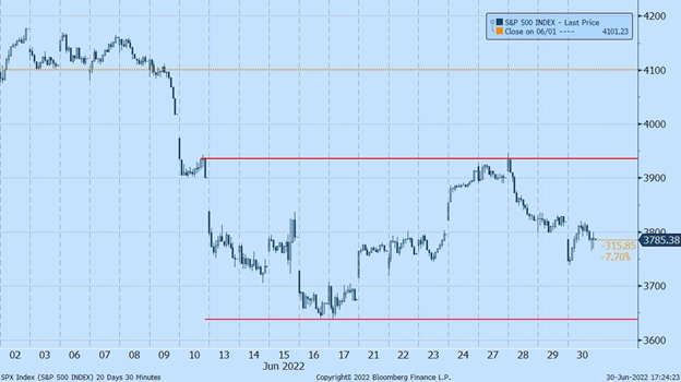 In the meantime, markets seem to have settled into a holding pattern. The S&P 500 has hovered around 3,800 since mid June, with the current price-to-earnings ratio of 19x inferring only a mild recession. Over this same period oil prices dropped from $120 to $105 per barrel and even Bitcoin seems have settled down, albeit in the $20,000 range.