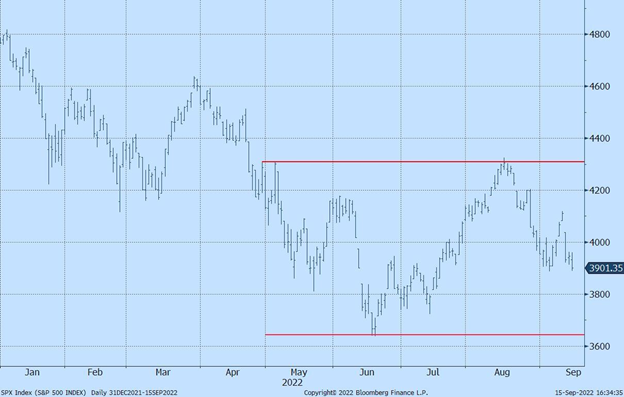 Chart 3 – S&P 500 Index YTD as of September 15, 2022. Despite the sharp drop in the past week, current price level is 7.7% higher than the June bottom. Source: Bloomberg Finance