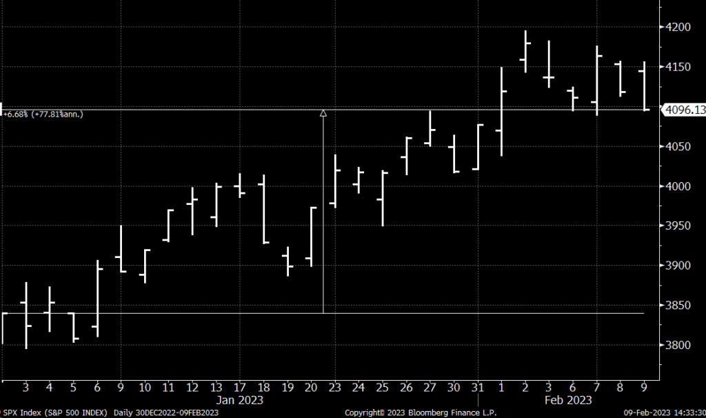 February 9, 2023 – The first two weeks of February provided investors with a series of contradicting signals about the state of the economy. It began with the Federal Open Market Committee meeting on February 1st, where the Fed, as expected, raised interest rates by 25bps to a range of 4.5-4.75%. While the decision itself was no surprise, Chairman Jerome Powell’s comments in the subsequent press conference suggested, for the first time, that the Fed might be ready to ease its war on inflation.