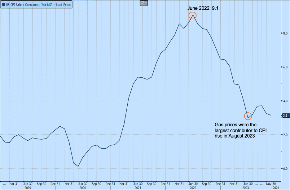 Chart 1: US Consumer Price Index (CPI) Urban Consumers YoY from January 1, 2019 to January 3, 2024. November’s 3.1% inflation number is still a full percentage point above the Fed’s target of 2%, but it’s a long way down from June 2022’s 9.1% number. Source: Bloomberg Finance.
